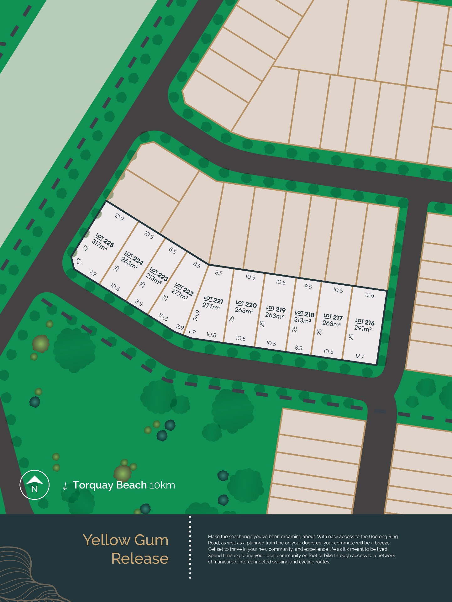 - Embrace your natural surroundings with an abundance of wetlands, trails, and parkland close by, and connect to neighboring communities and Geelong city via the future planned rail link.