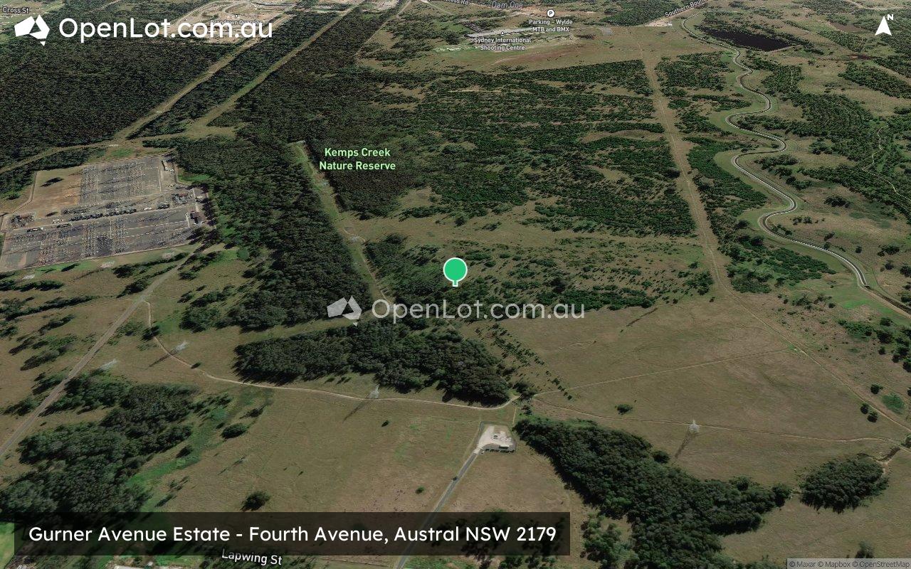 The suburb boundary is located along Kemps Creek and property boundaries are to the west, with the suburb boundary found along a drainage channel to the east. The suburb boundary is located along Bringelly Road to the south, with the TransGrid – Kemps Creek Electrical Substation and property boundaries providing the suburb boundary to the north.