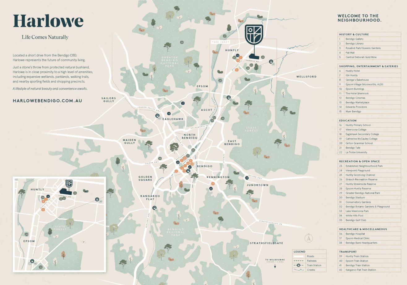 Location & Map for Harlowe Bendigo Estate - Huntly