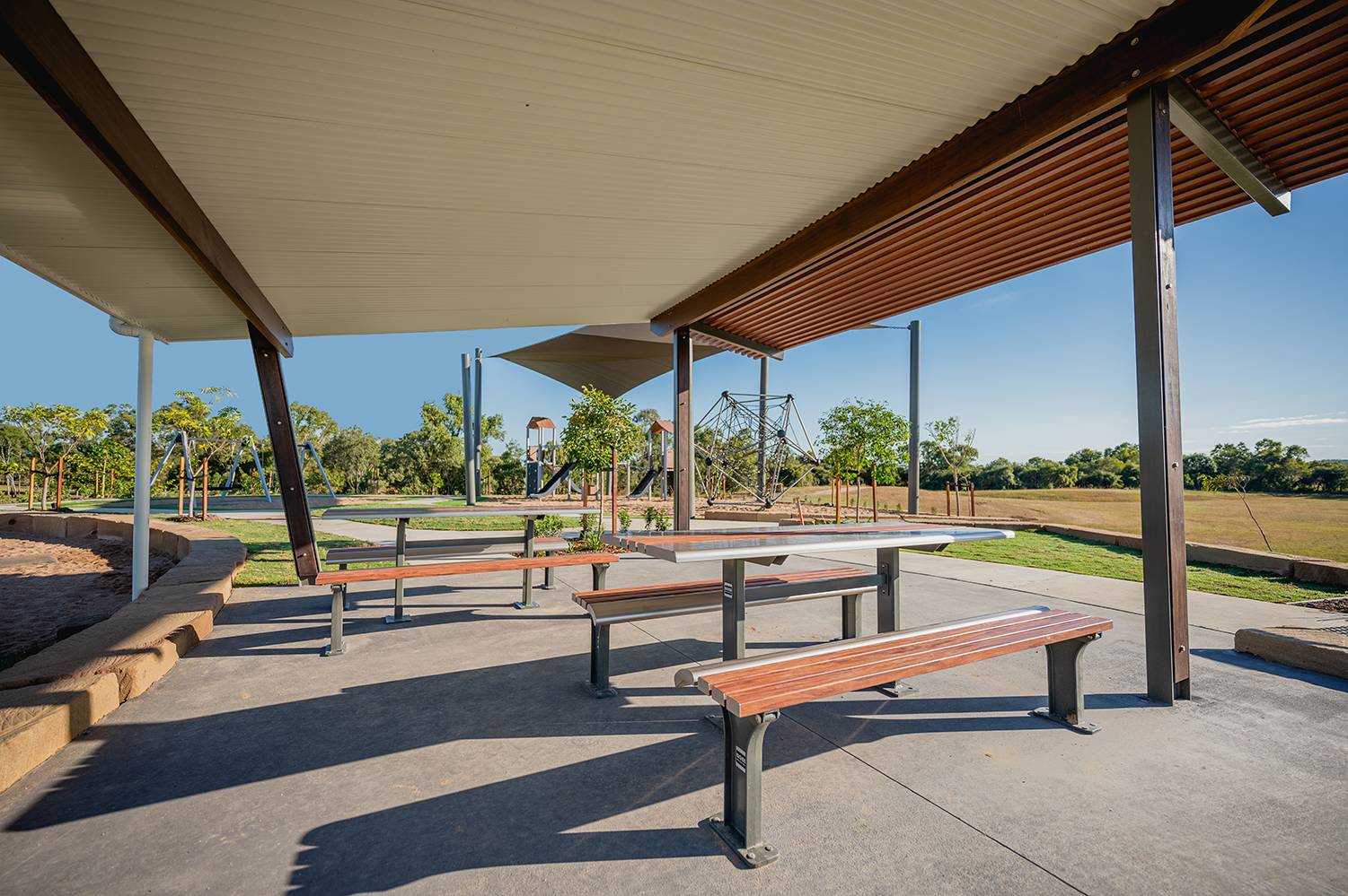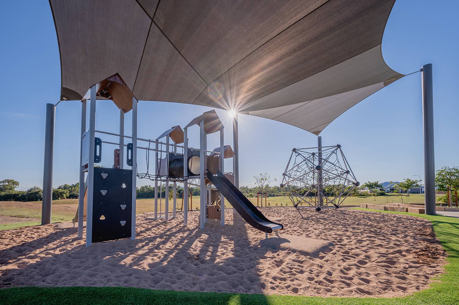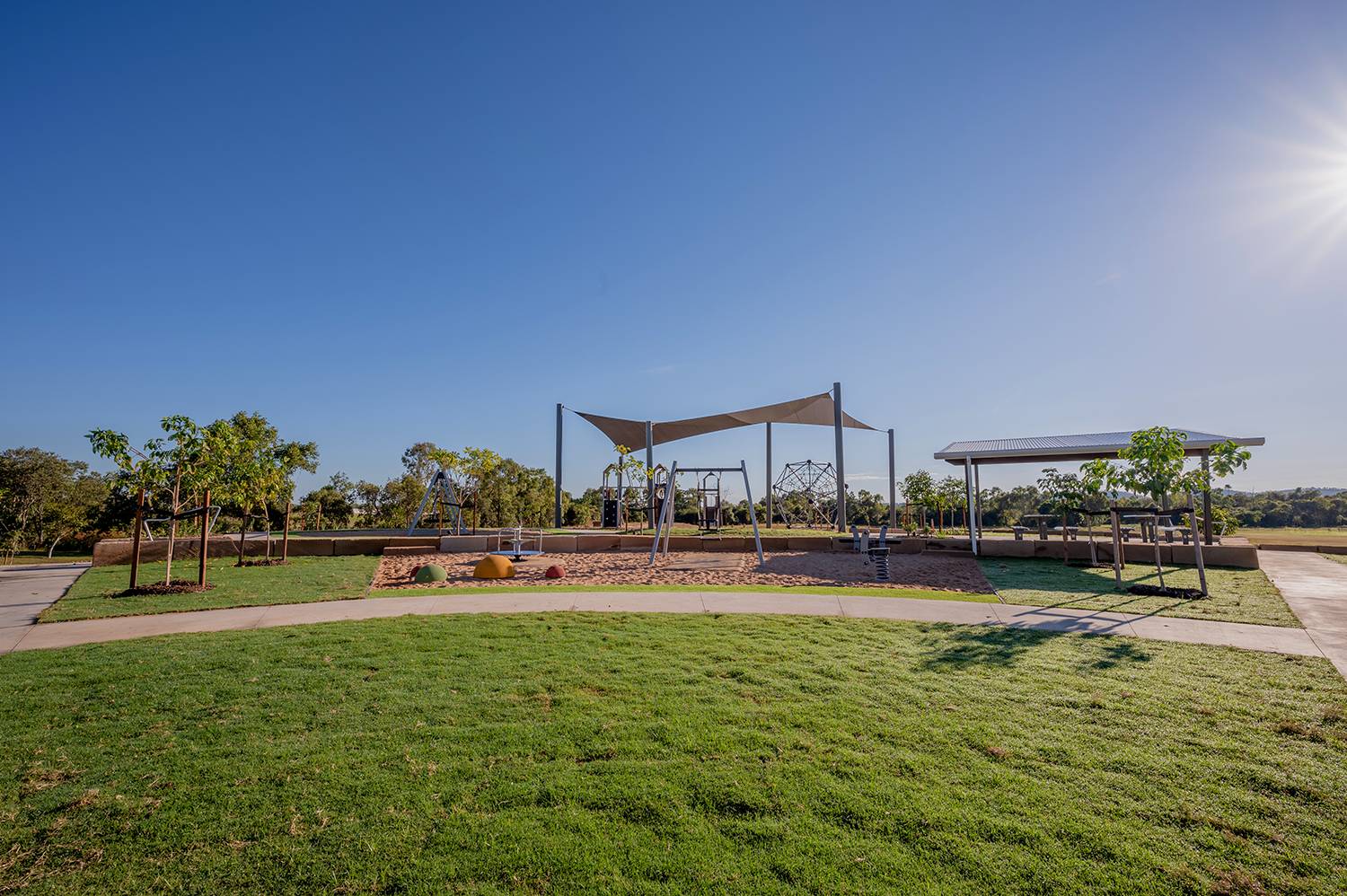 swing with basket, half domes and a hoop carousel... keeping the kids active has never been so easy. - North Queensland’s very first Disc Golf Course is located right here at Harris Crossing, where every member of the family can enjoy 18 holes (baskets) of Disc Golf all year round.