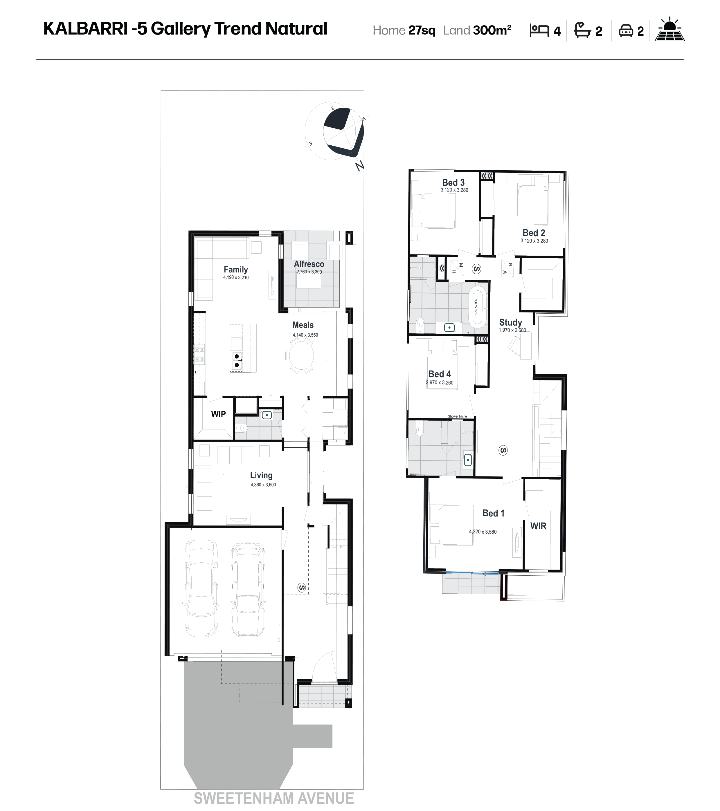 Step into the Kalbarri, a beautifully crafted 27-square home designed to offer contemporary living at its finest. Situated on a 300.1m² block, this two-story residence is perfect for families seeking a blend of comfort, functionality, and style.