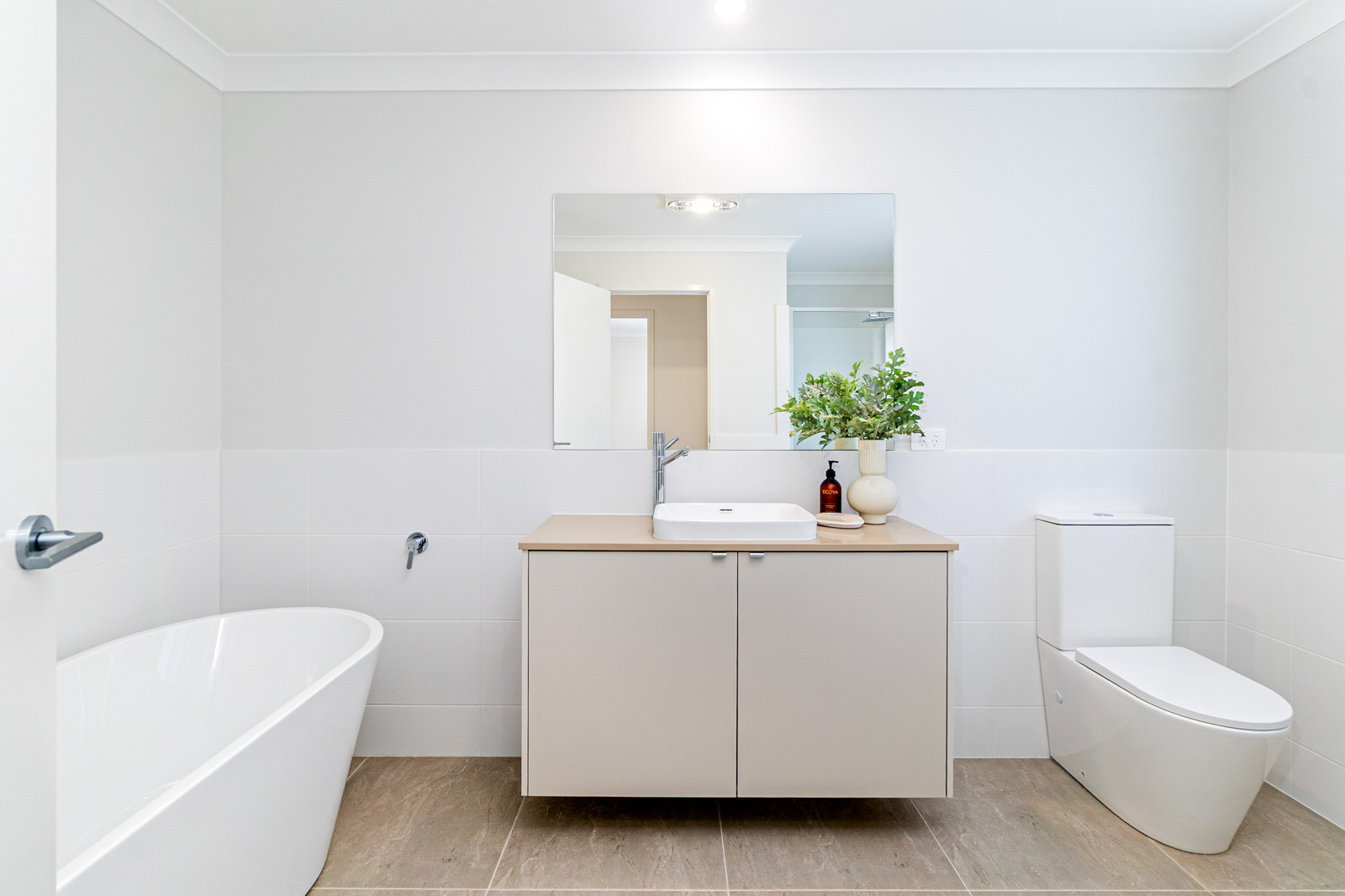 • Half-height tiling in bathrooms, ensuite, and powder rooms with showers