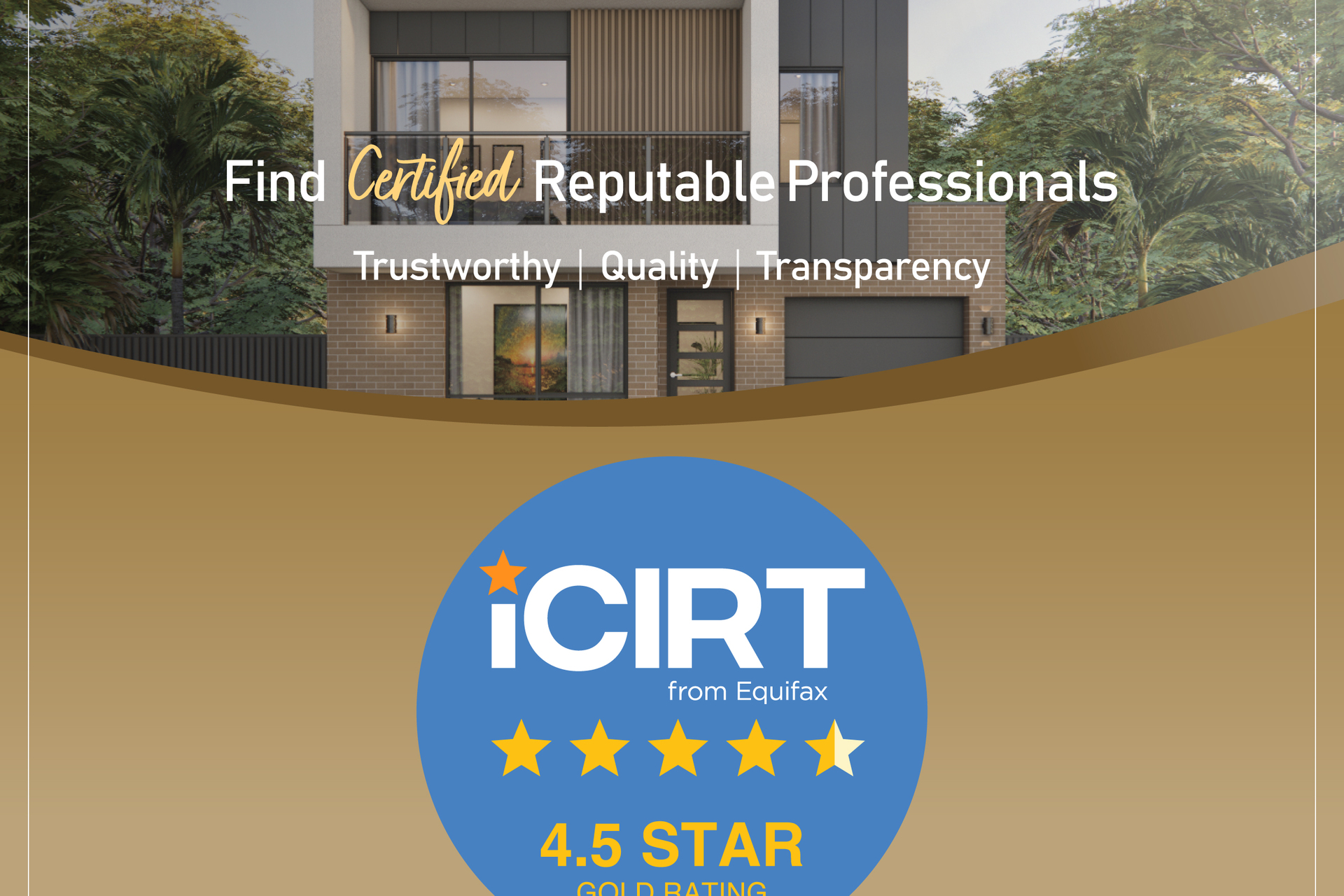 The Builder has maintained a healthy and steady growth in the past few years. Noble Home Builders had been independently assessed by iCIRT and awarded the first and only 4.5-star Gold High-confidence rating around the Australia, certifying we have the financial capacity, experience and capability to deliver a quality build you can trust.