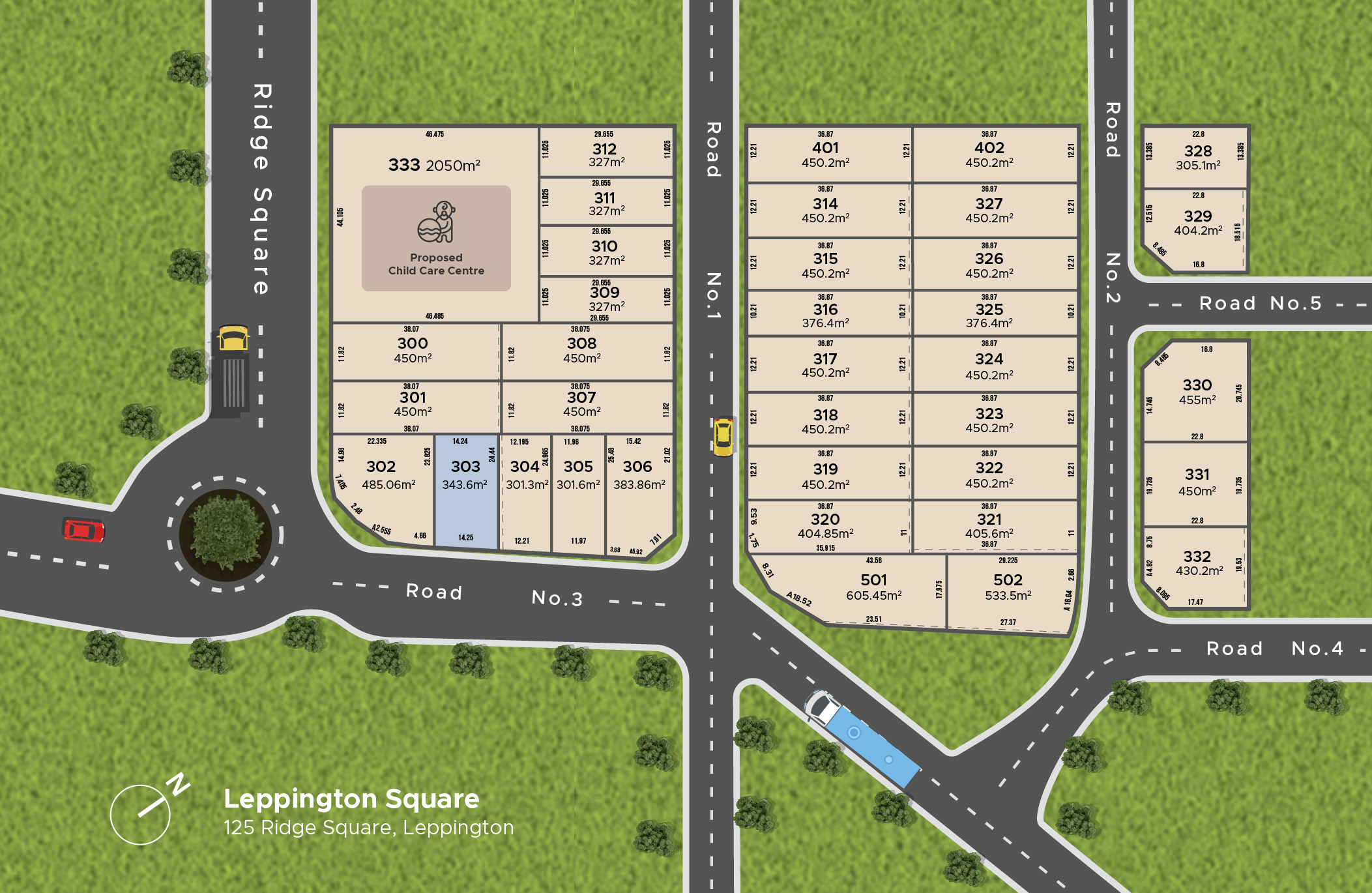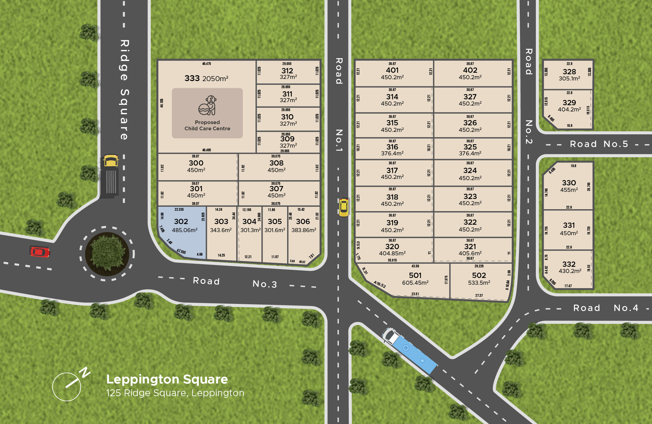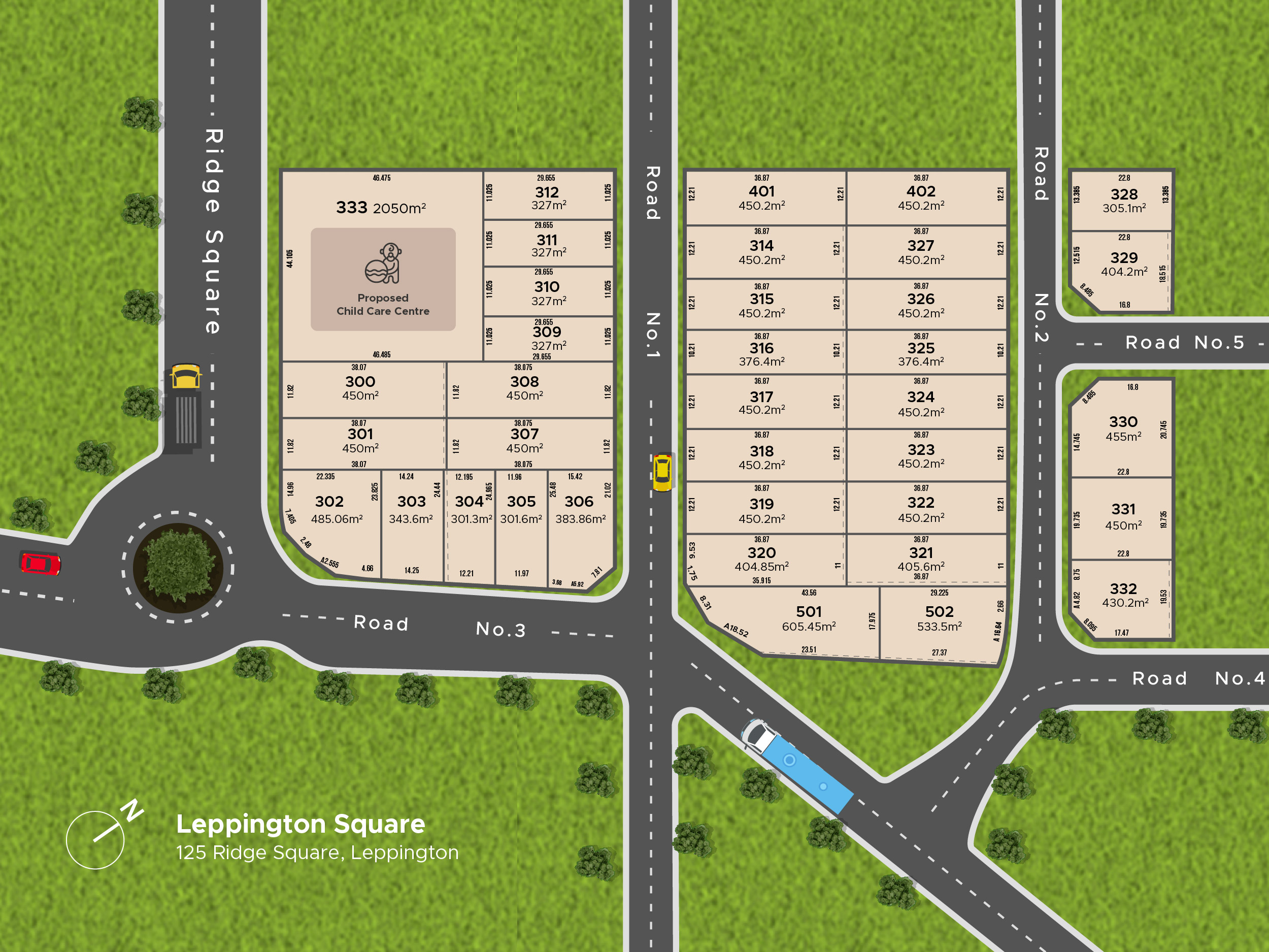 Leppington Square Estate will be synonymous with larger blocks, Ranging from (400sqm- 470sqm) with 12m plus frontages, blocks that are ideal for duplex construction, and with the added benefit of having a childcare centre located within the estate plus the added bonus of a late registration period in Mid 2026.