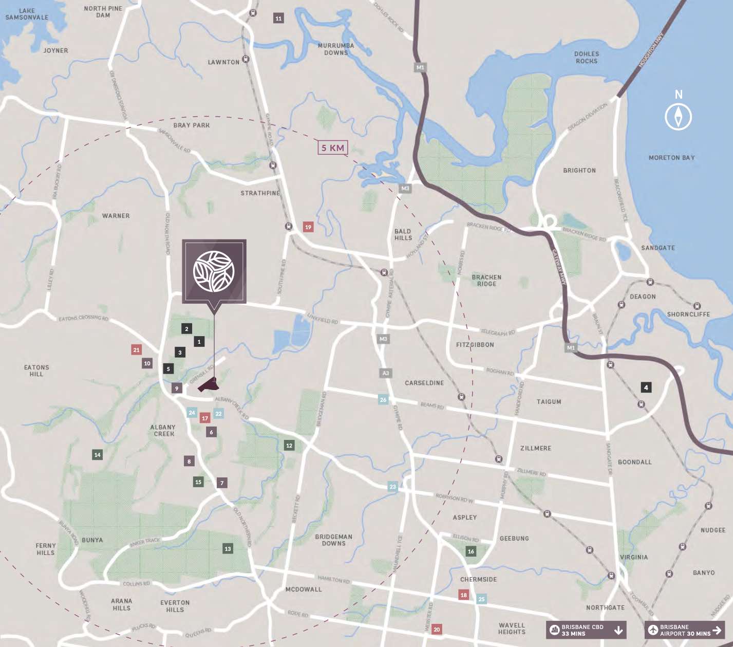 - Albany Creek State High School - 1.8km south