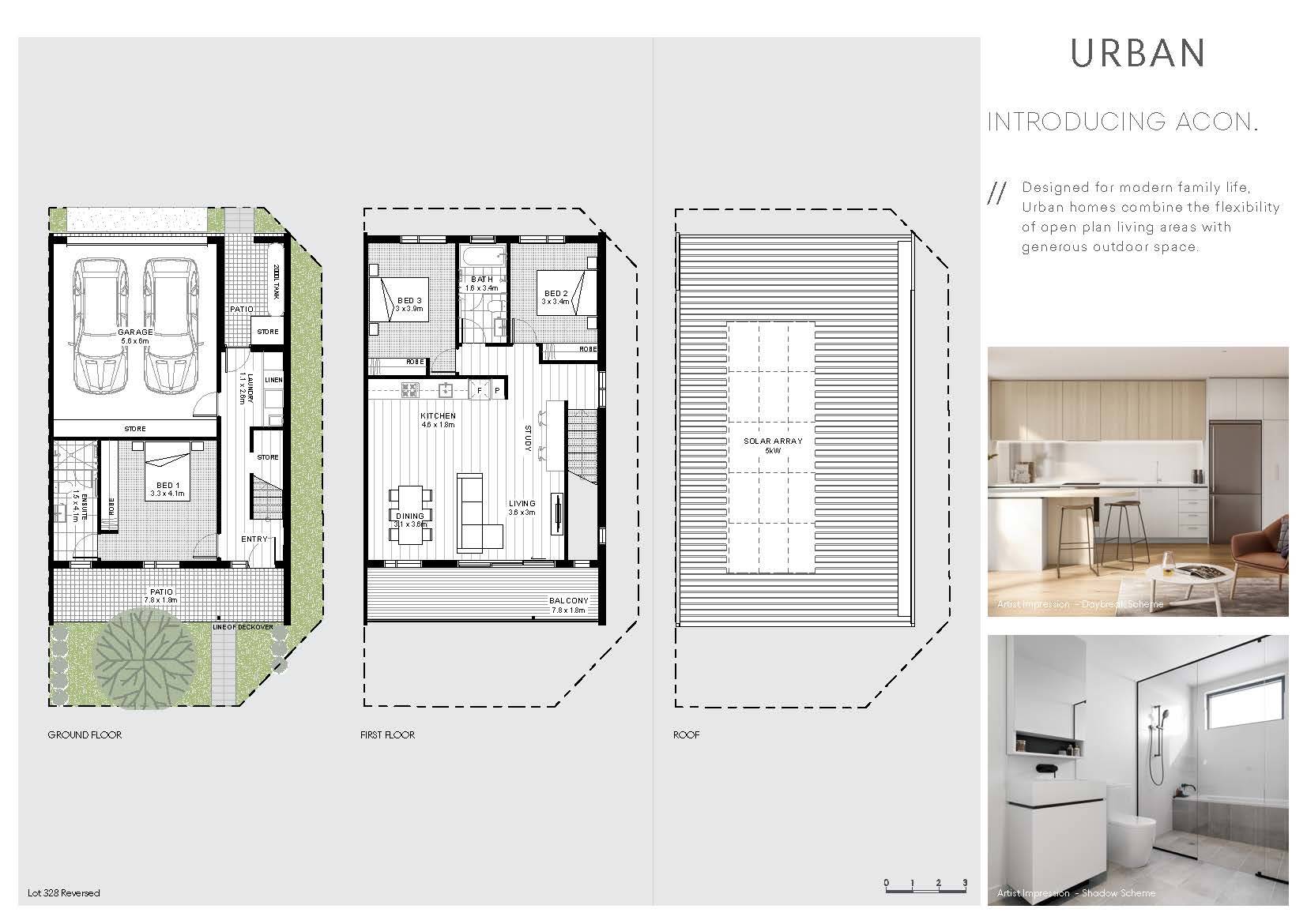 A spacious ground floor master bedroom looks out to a landscaped garden, while upstairs includes 2 large bedrooms and family bathroom. Glazing opens the living and dining areas to the light and views of the upstairs outdoor terrace. Acon provides a contemporary living solution.