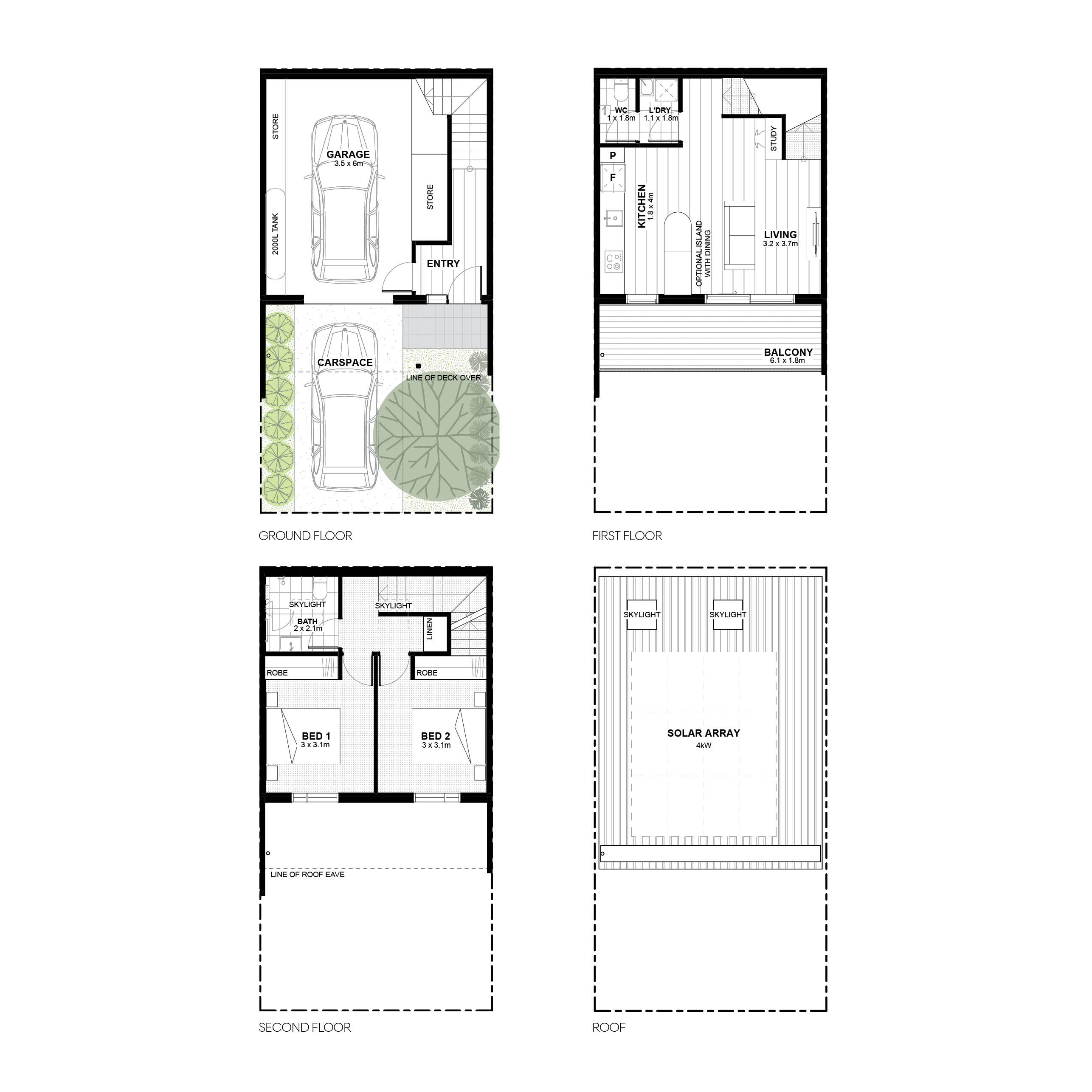 • 2,000 litre rainwater tank