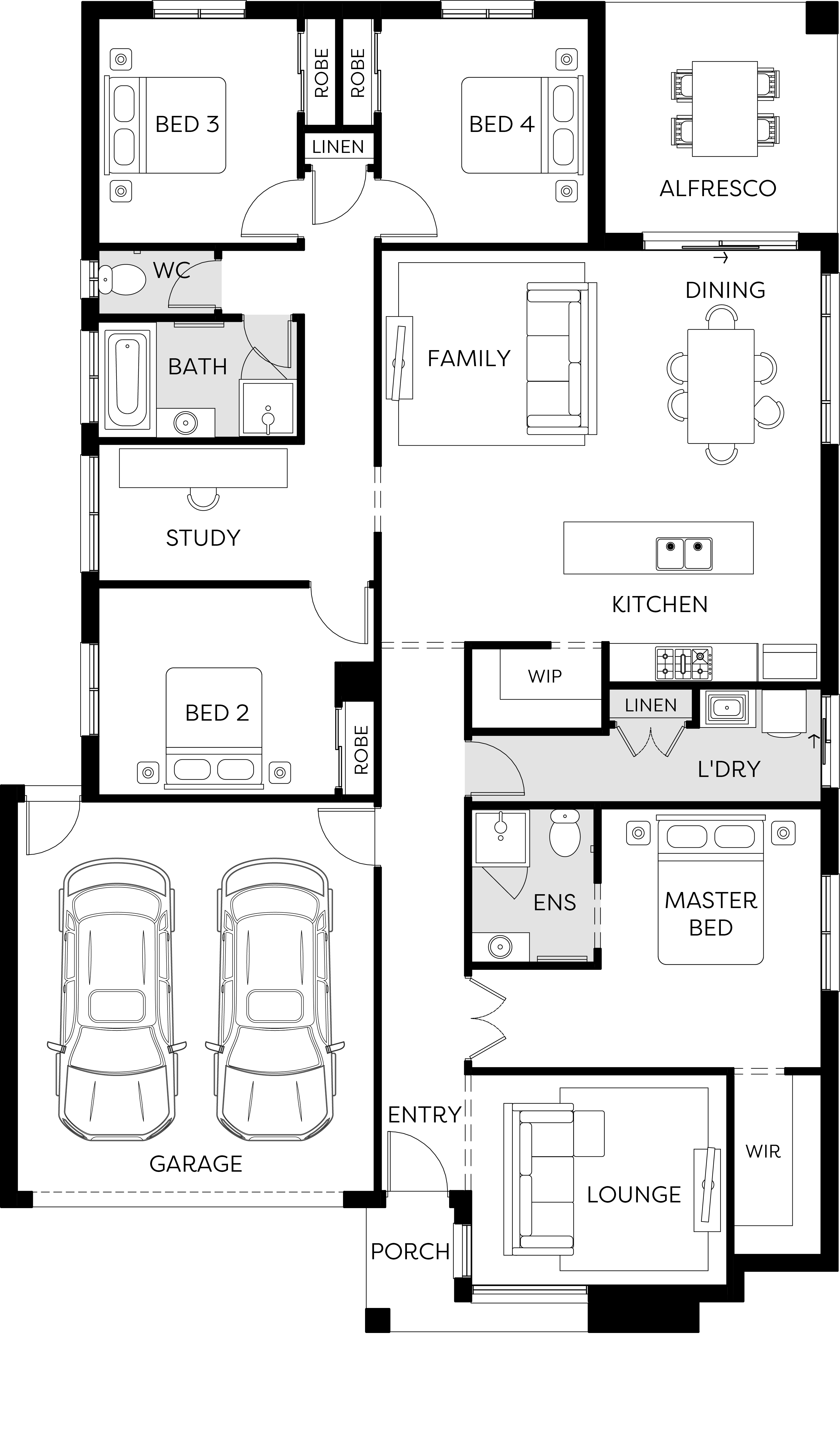 - 40mm stone benchtops to kitchen, ensuite and bathroom