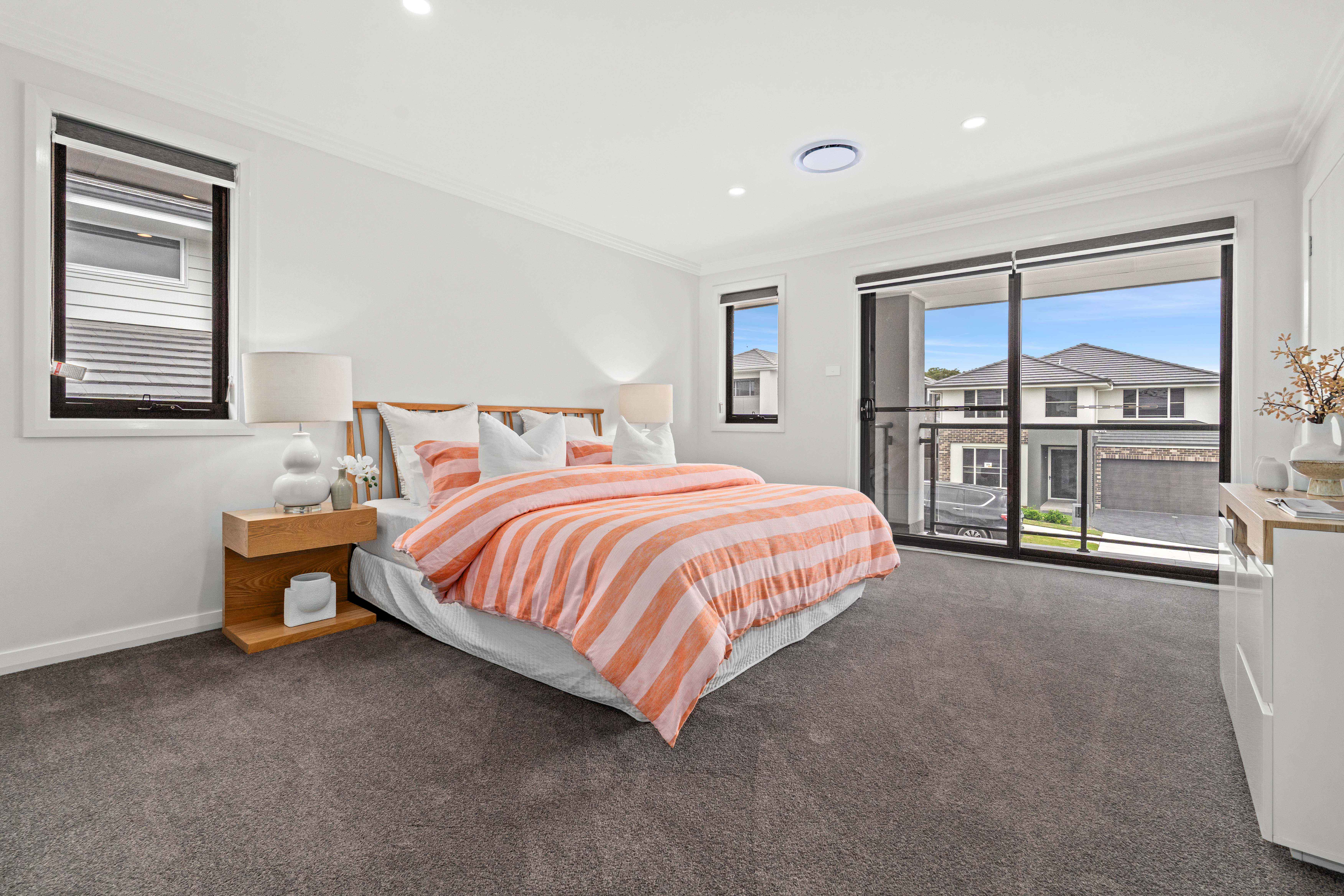• Flyscreens to all windows and sliding doors, block-out blinds throughout and light-filtering blinds to the front elevation