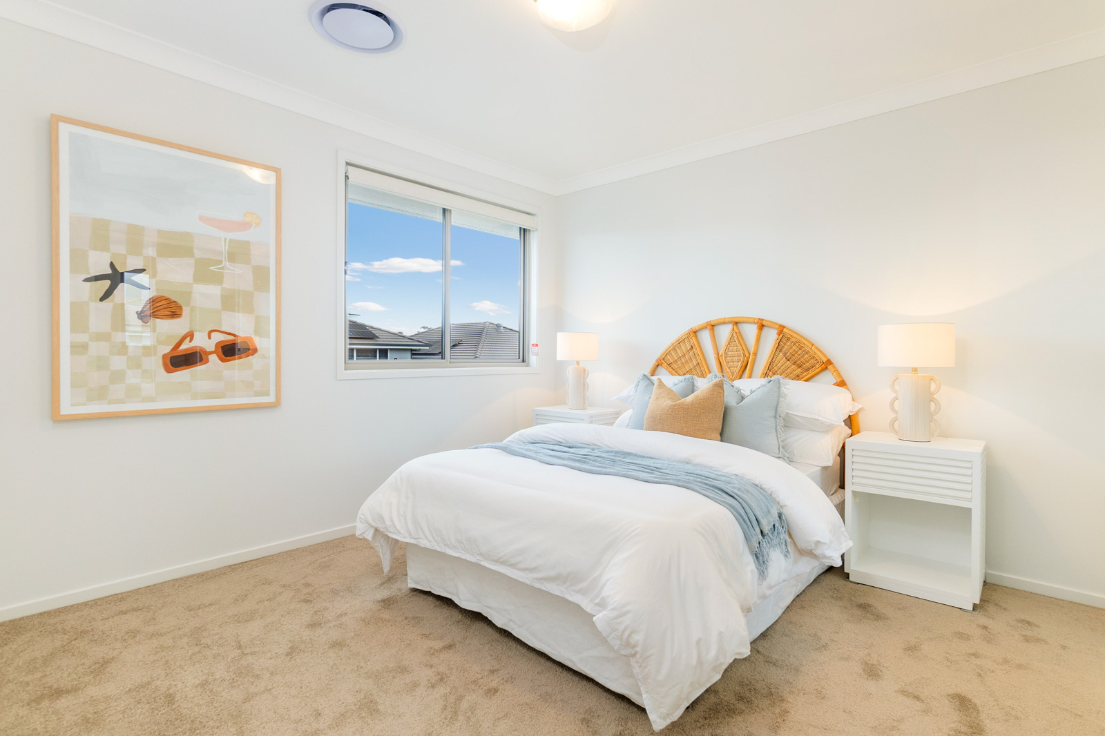 • Flyscreens to all windows and sliding doors, block out blinds throughout, and light filtering blinds to front elevation