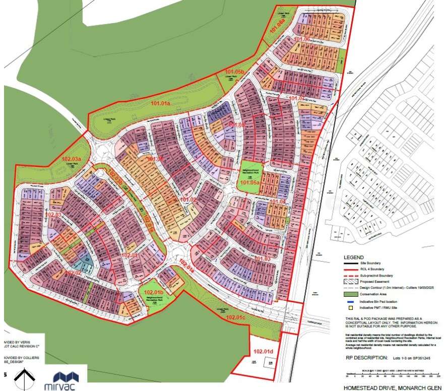 - With development approvals underway, Mirvac anticipates sales to begin in 2025, with settlements starting in FY27. The range of home sites will cater to diverse needs, featuring low maintenance sizes from 300m² to family sized home sites of 640m² and frontages from 11m to 20m.