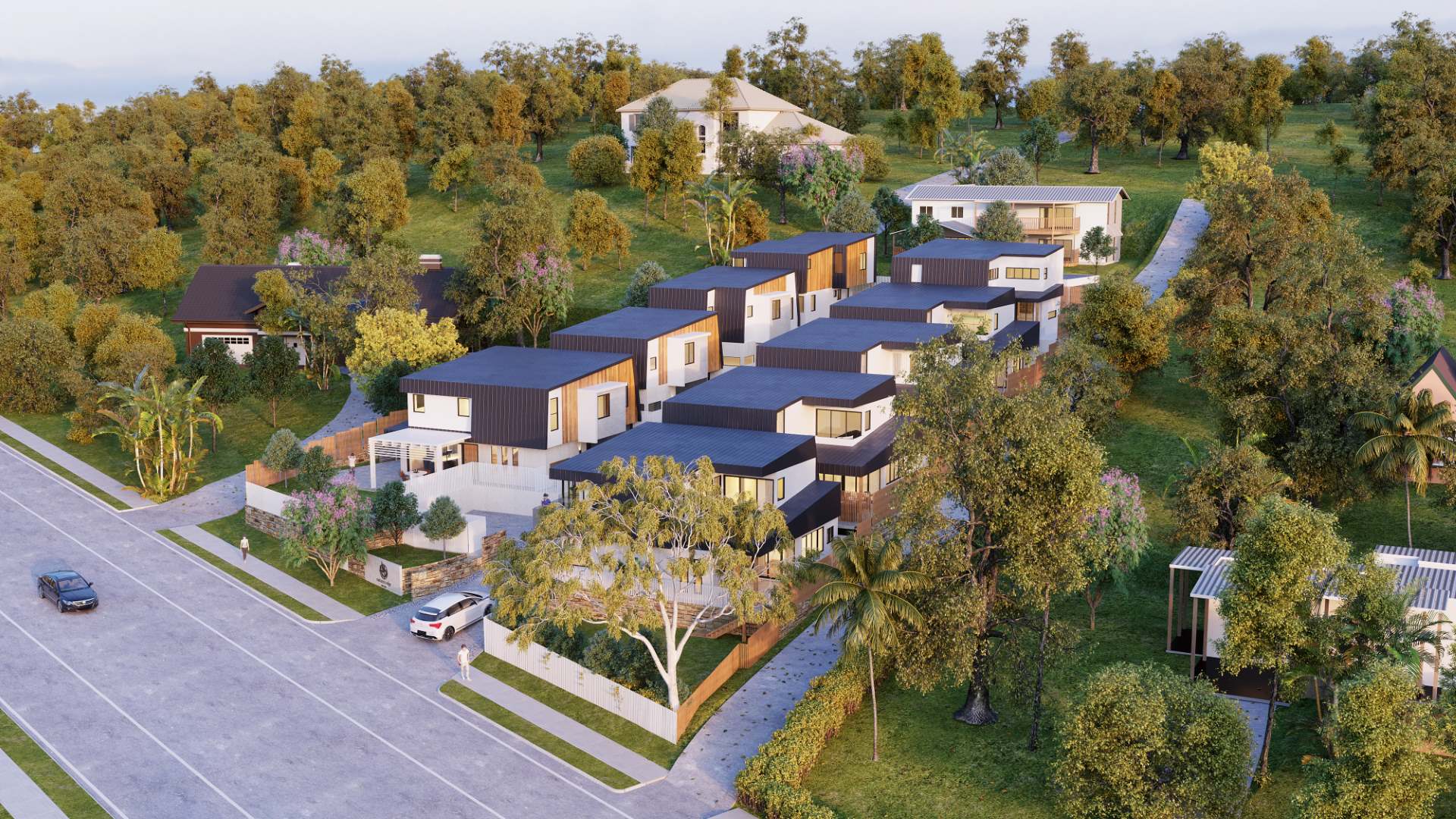 The approved project takes place over the massive 3493 sqm block, with approved plans for 9 high end executive houses featuring 3 and 4 bedroom designs over 2 levels.