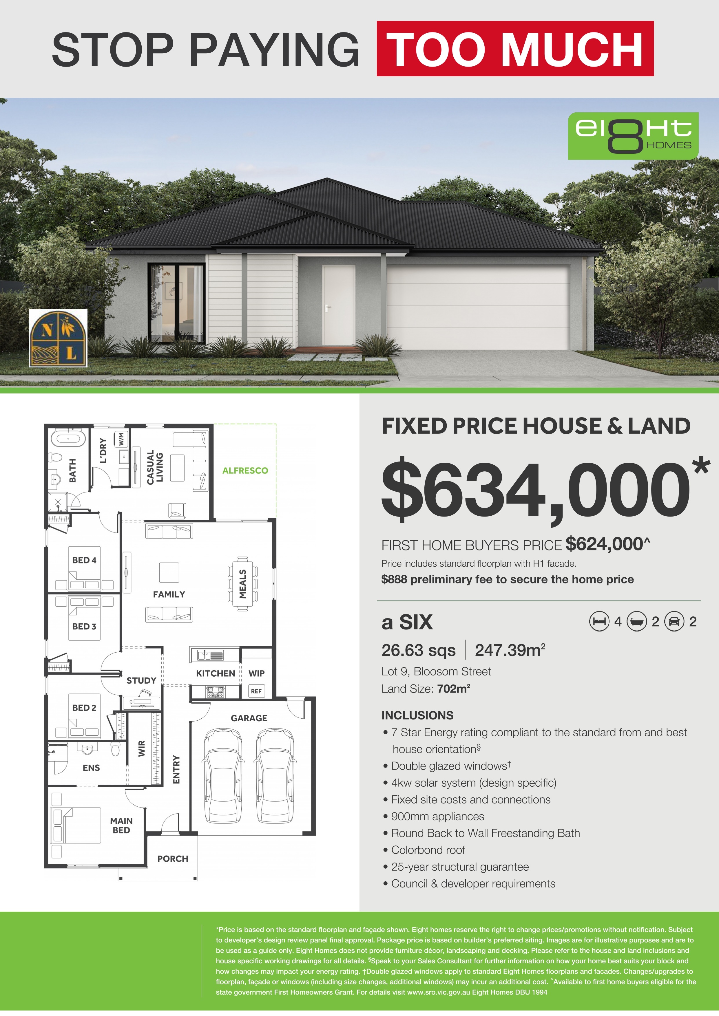 • 7 Star Energy rating compliant to the standard from and best house orientation