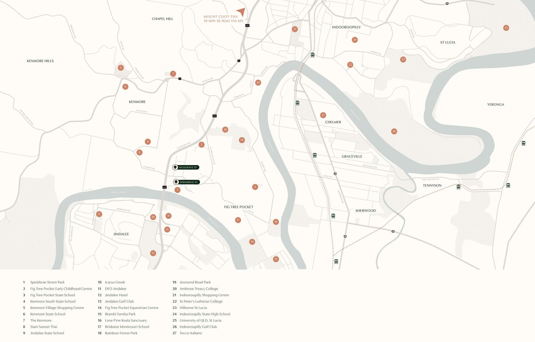 - Kenmore South State School - 738m north-west