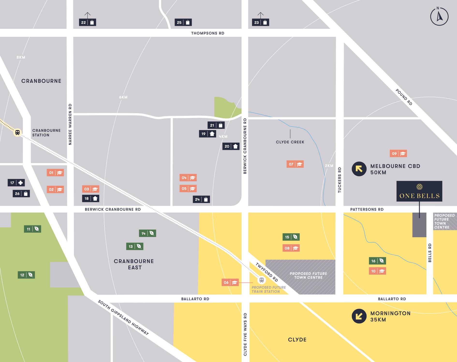 The new suburb is bounded by Clyde-Five Ways Road to the west, Pound Road and Bells Road extension to the east, Hardys Road to the north and Ballarto Road to the south.
