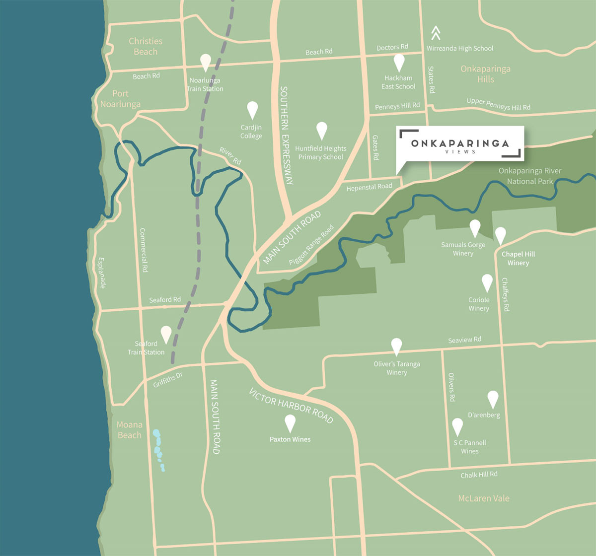Location & Map for Onkaparinga Views Estate - Hackham