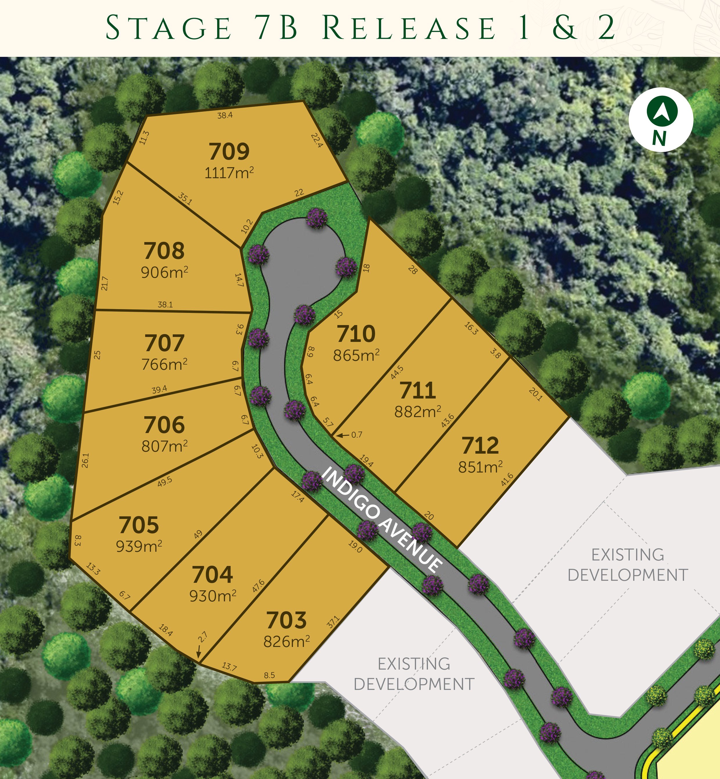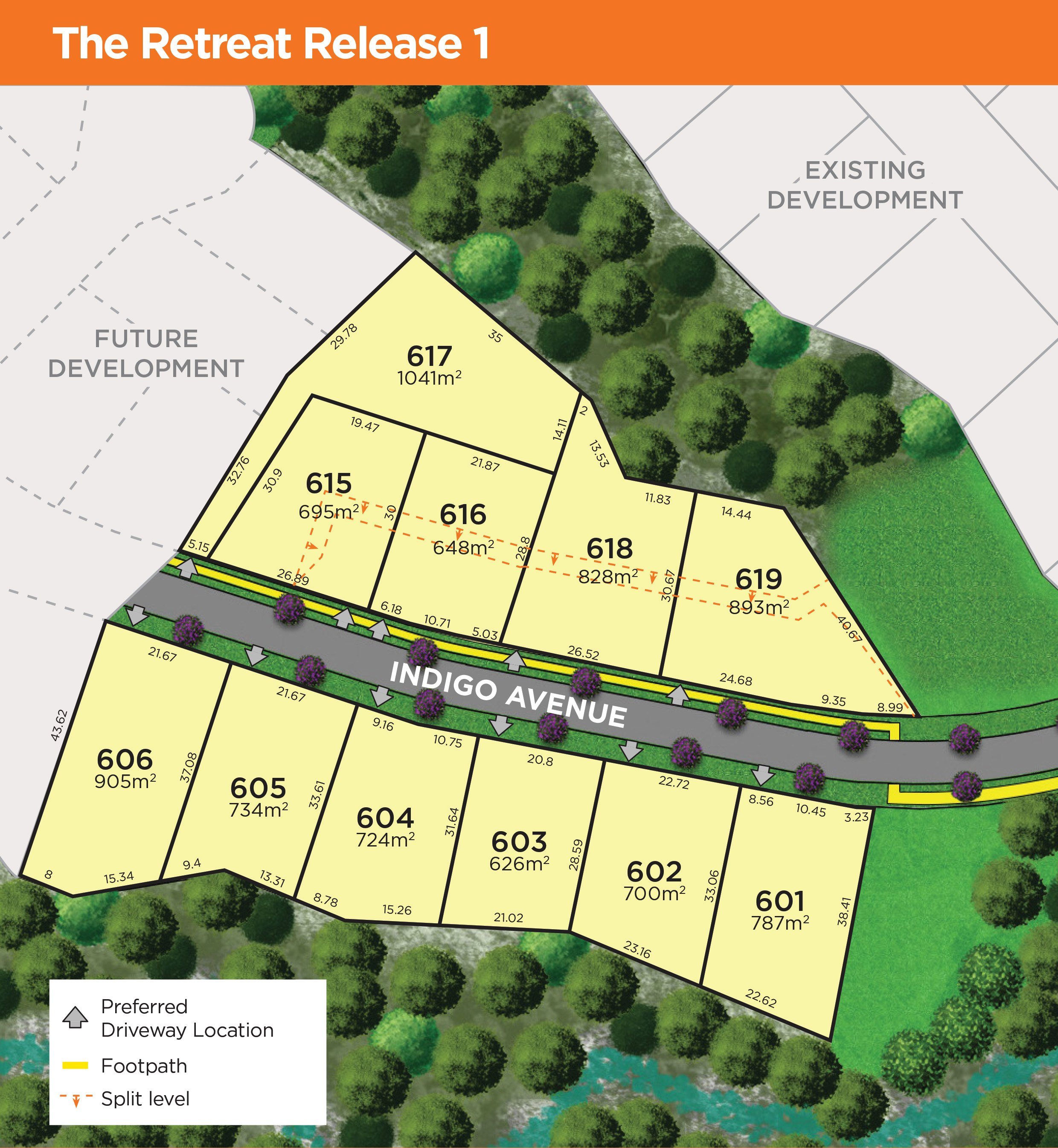 Large elevated lots ranging in size from 851m2 to 939m2
