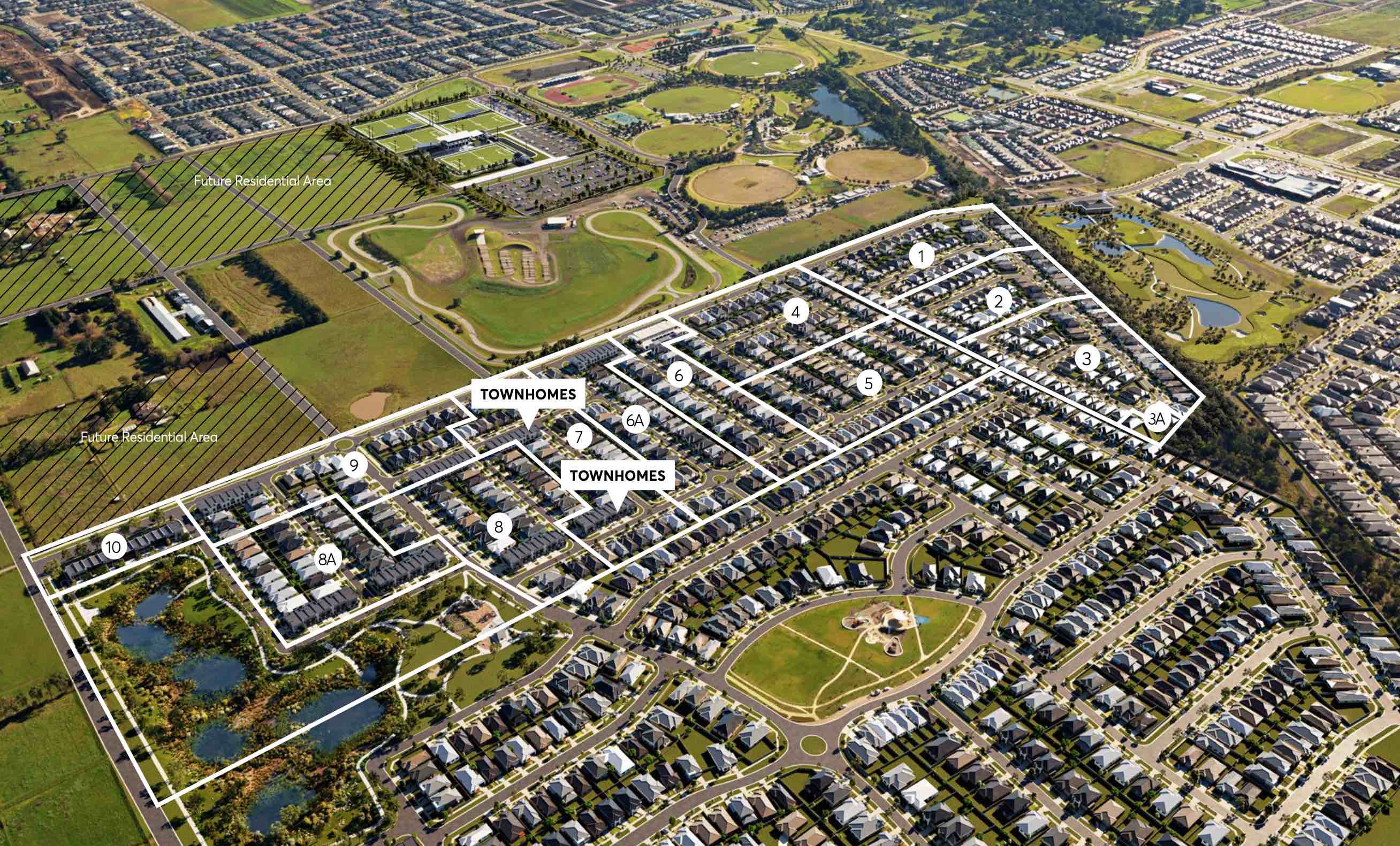 Existing and proposed sports fields and parks are strategically located within the new residential areas. The major and minor town centre areas provide for social, retail and community infrastructure, with the largest located to the south west corner of the Precinct Structure Plan.