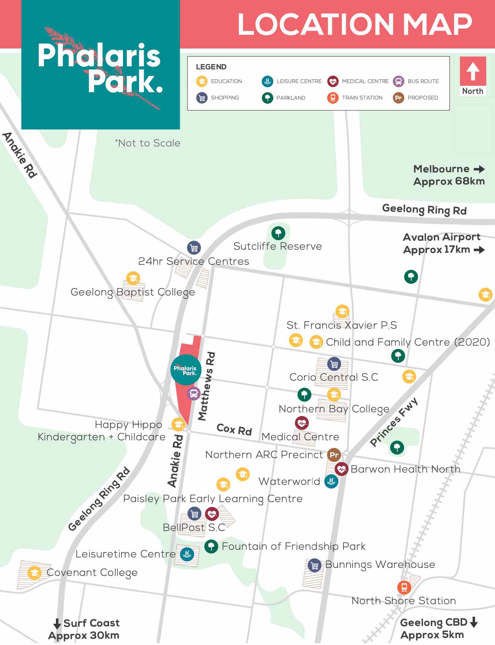 | Distance to | Geelong CBD - 9 km north Melbourne CBD - 62 km south-west |