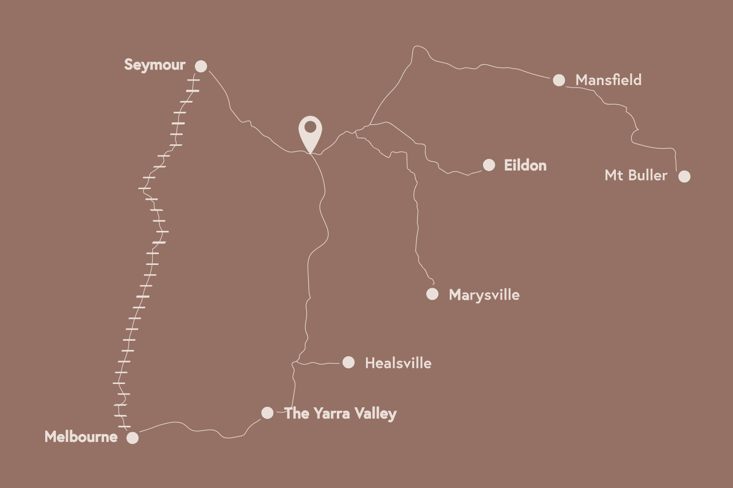 - 1hr 15min to Seymour to Melbourne CBD and 1hr 30min to Yea to Melbourne CBD