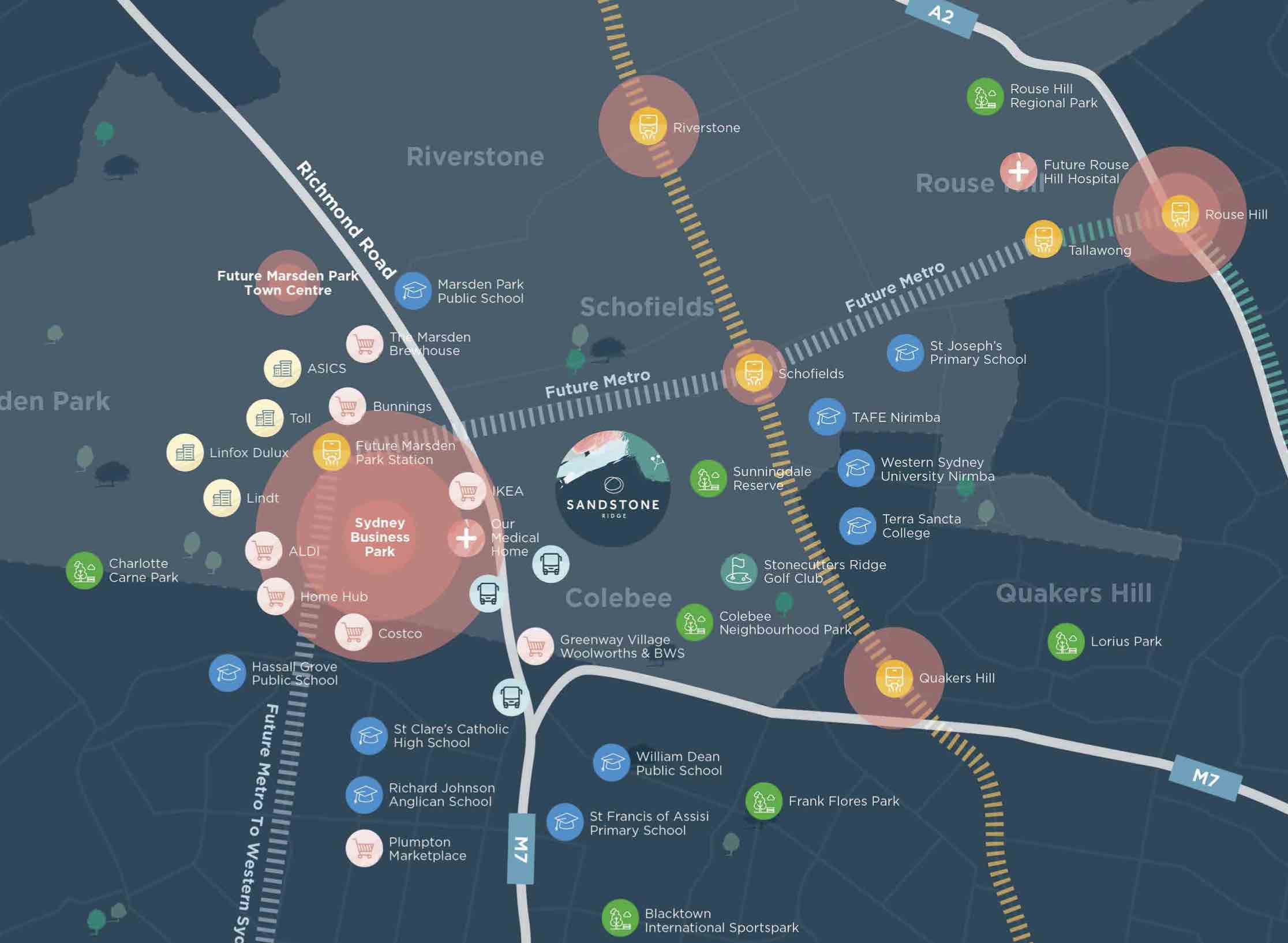 | Distance to | Sydney CBD - 35 km north-west Sydney Airport - 40 km north-west |