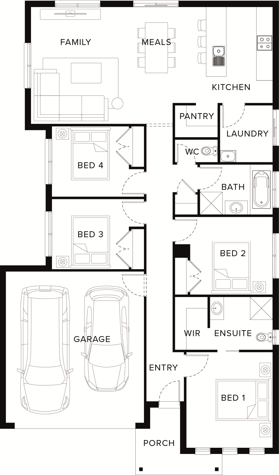 • Choice of Laminate or Tiled flooring to Entry, Kitchen, Family and Meals. Carpet to the remaining areas