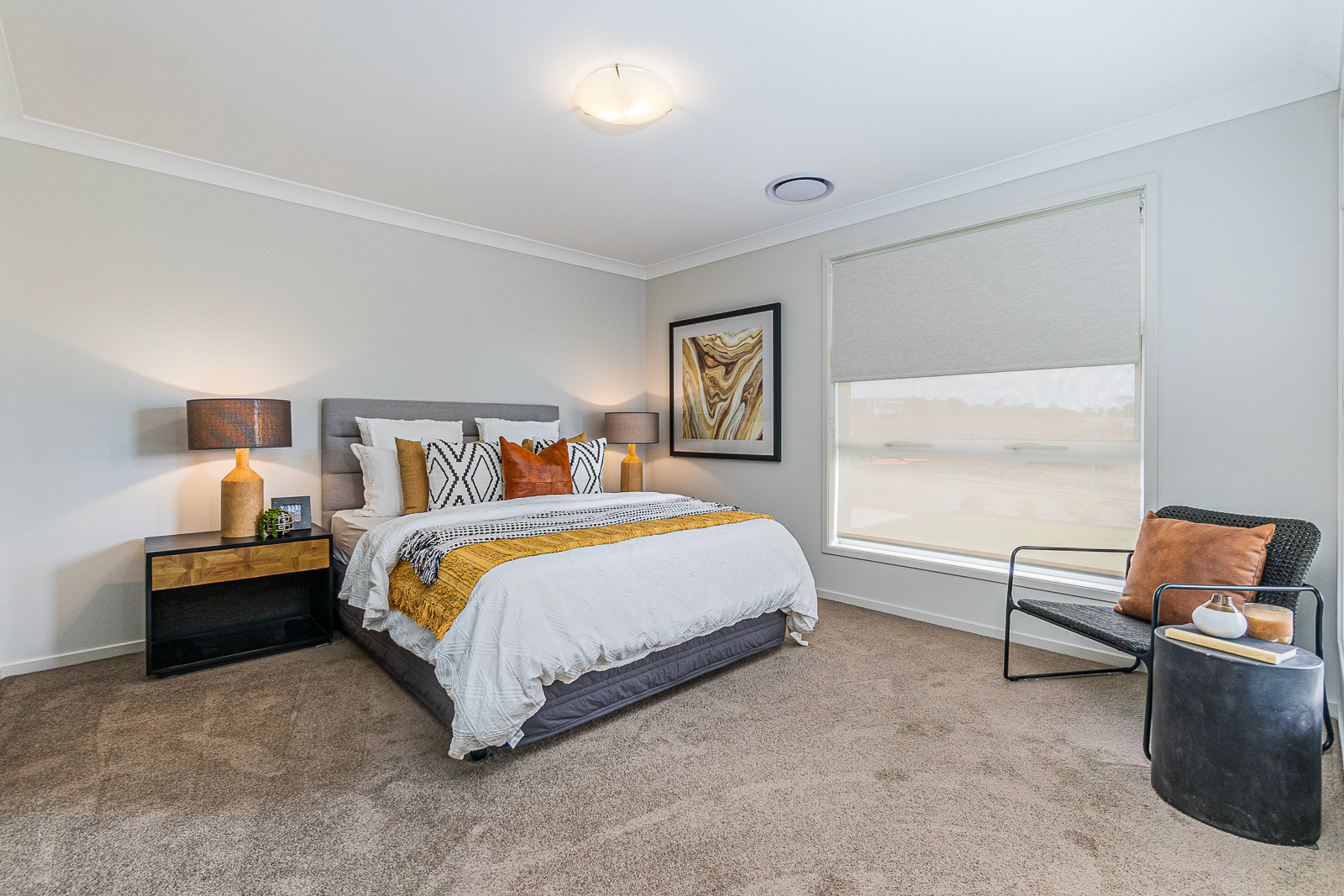 • Flyscreens to all windows and sliding doors, block out blinds throughout, and light filtering blinds to front elevation