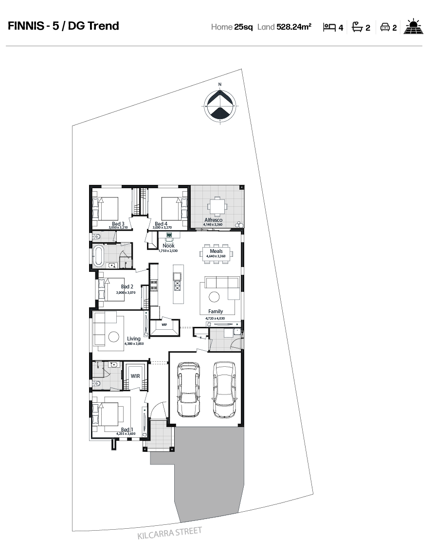 Disclaimer: Plans, drawings, and designs on this website are for marketing and illustrative purposes only. Dimensions are approximate, subject to survey and final subdivision plans (STCA). Plans are not to scale. Images, including artist impressions, may depict items not included in the sale. Purchasers should rely on their own enquiries and the Contract for Sale. Allam Homes Pty Limited may alter designs, specifications, dimensions, inclusions, and prices without notice. For full terms, visit www.allam.com.au.