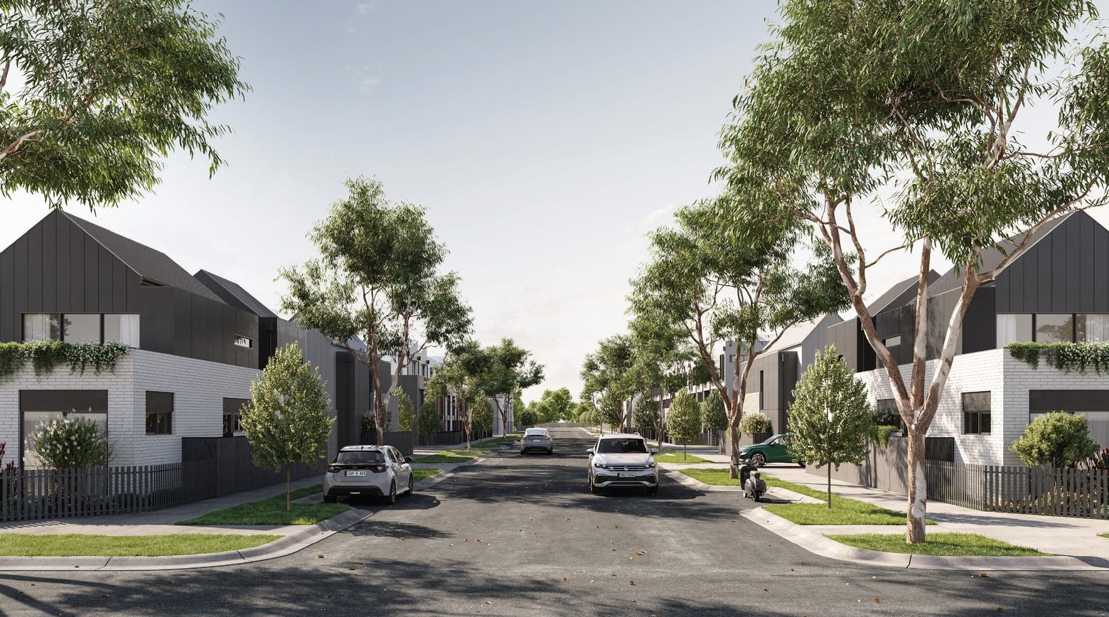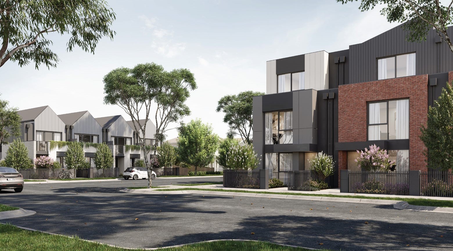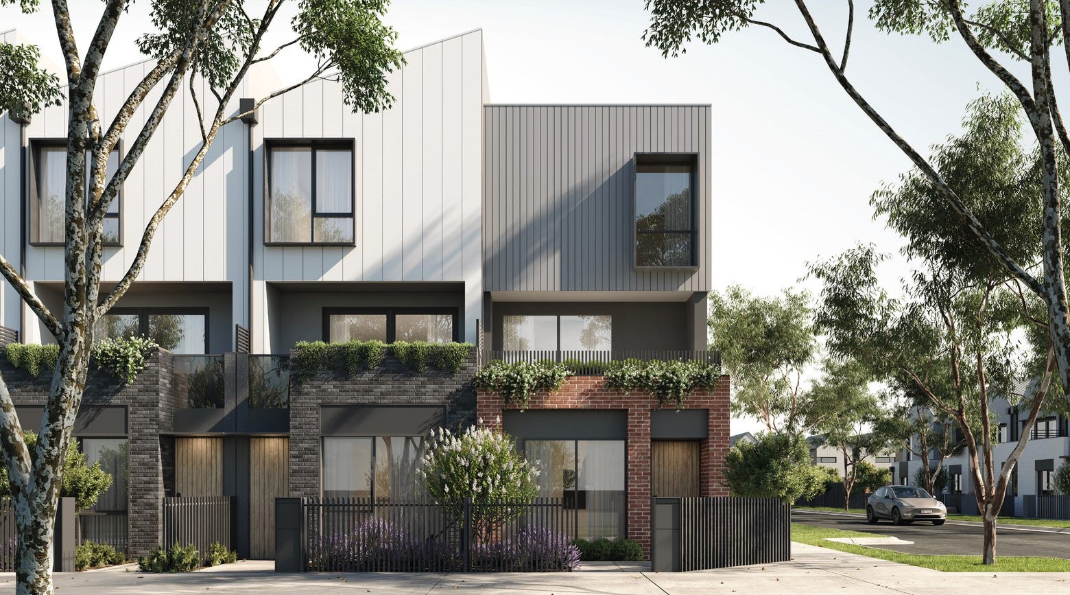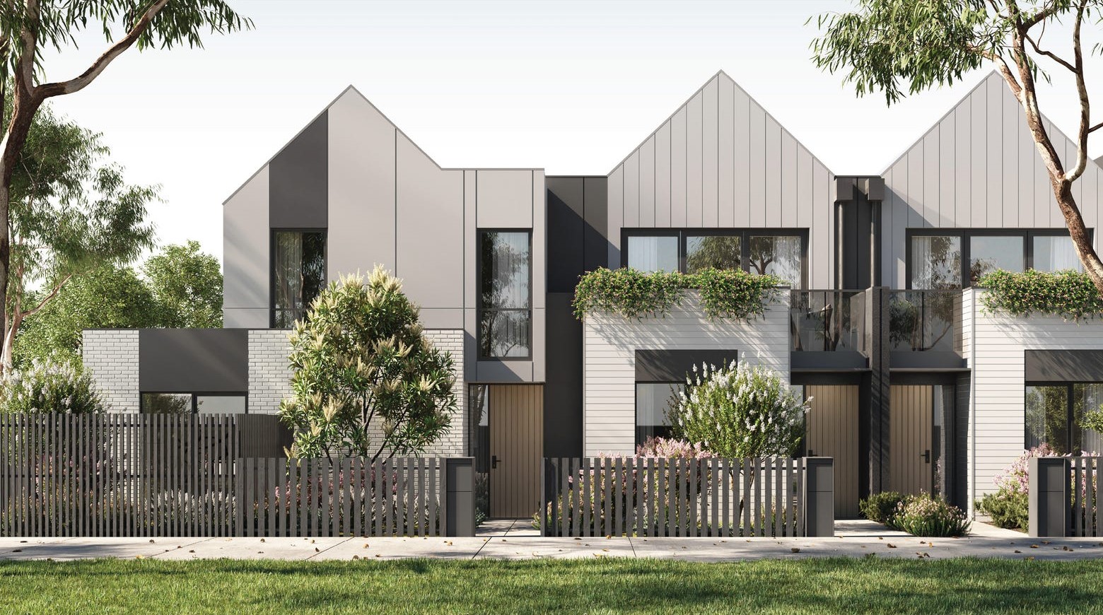 - Gable rooflines, timber front doors & picket fences