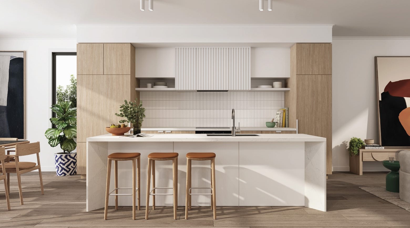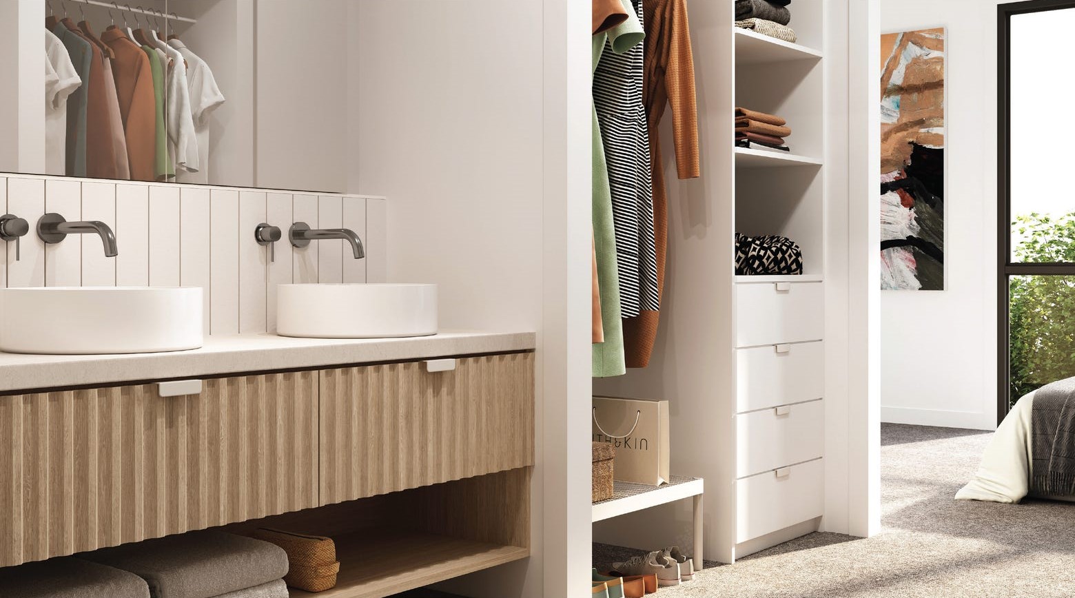 - Bathrooms and ensuites combine a fresh, clean material palette with natural light and plenty of storage