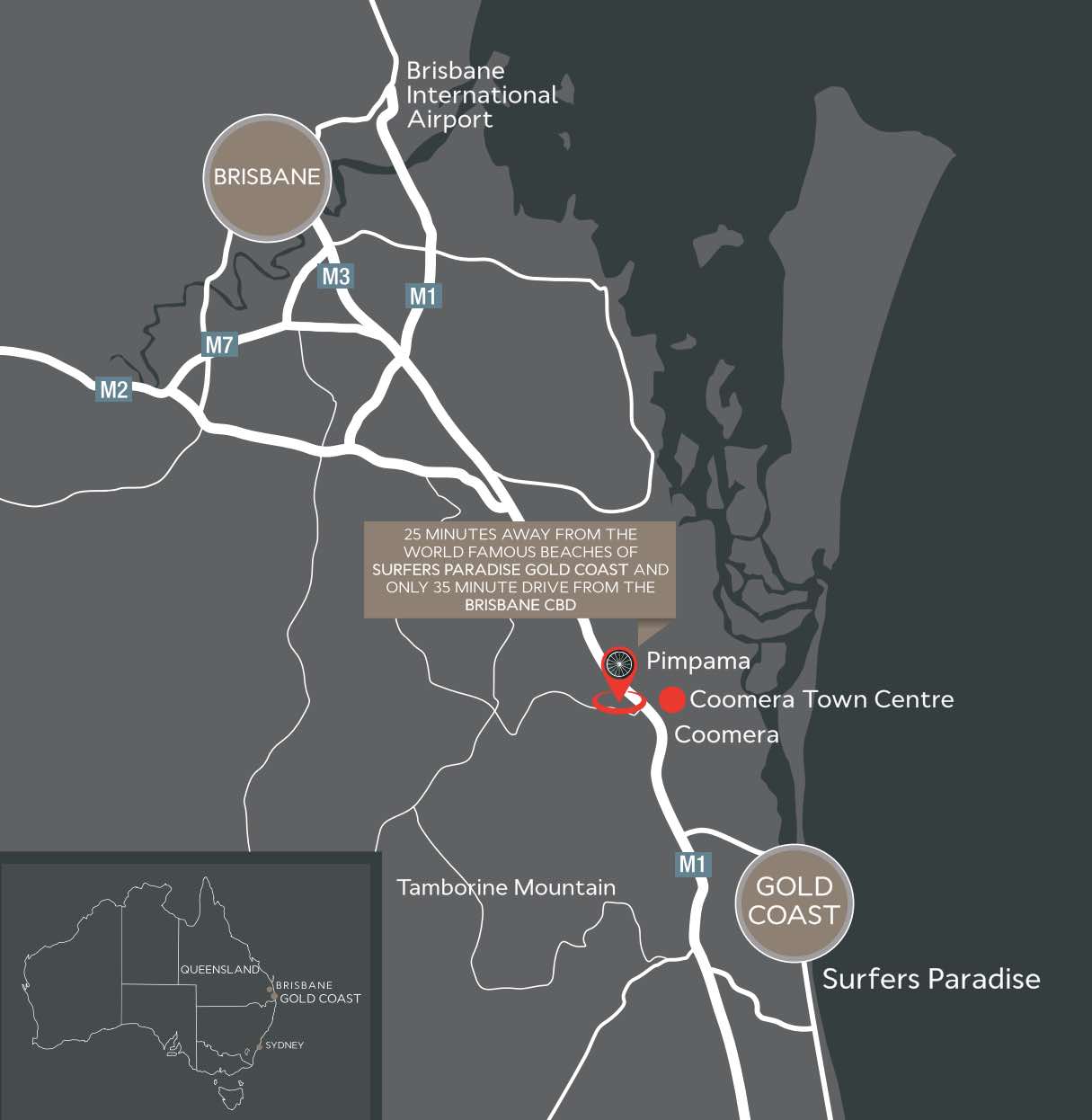 | Distance to | Gold Coast CBD - 20 km north-west Brisbane CBD - 51 km south-east |