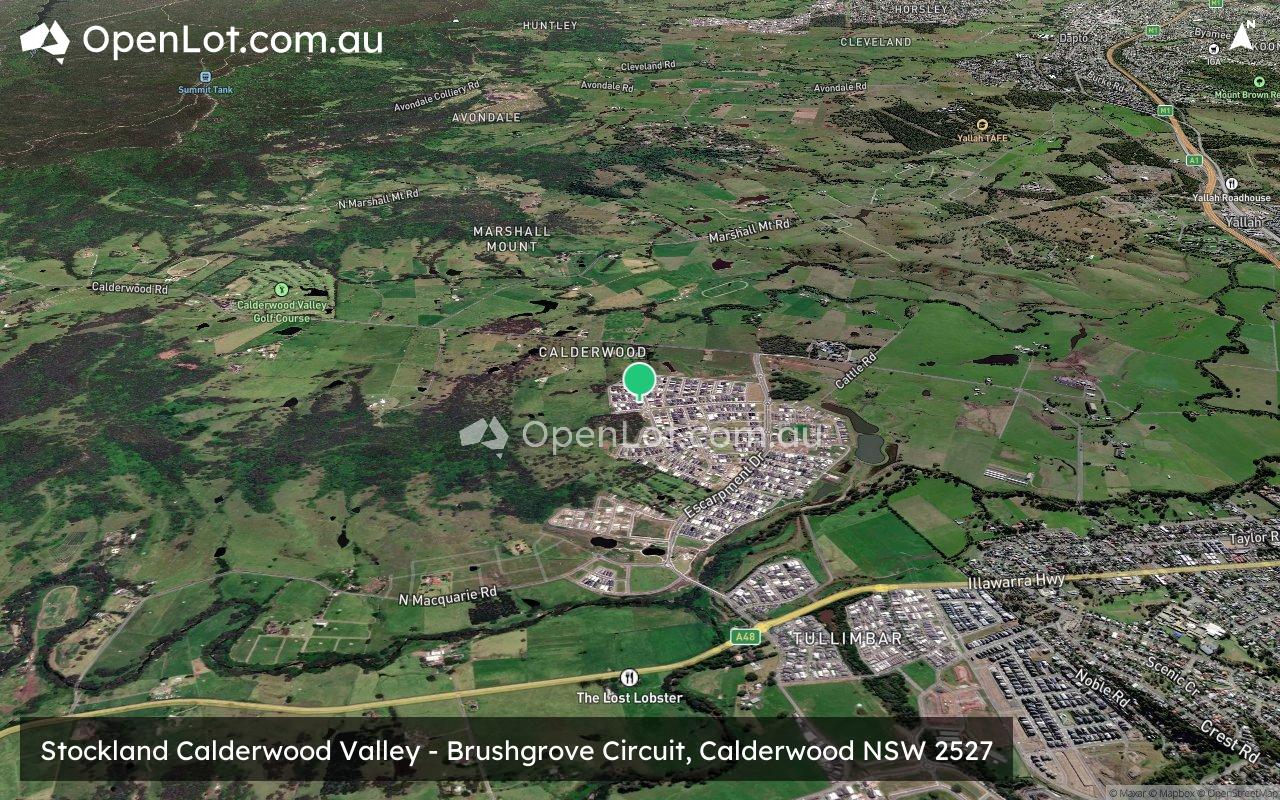 The narrow suburb of Calderwood is located south-west of Wollongong and primarily rural land holdings, with Calderwood found to contain the eastern portion of the Macquarie Pass National Park and rural residential properties. The suburb does not have a business district, though contains a large golf course in the north and a new urban development area to the south.