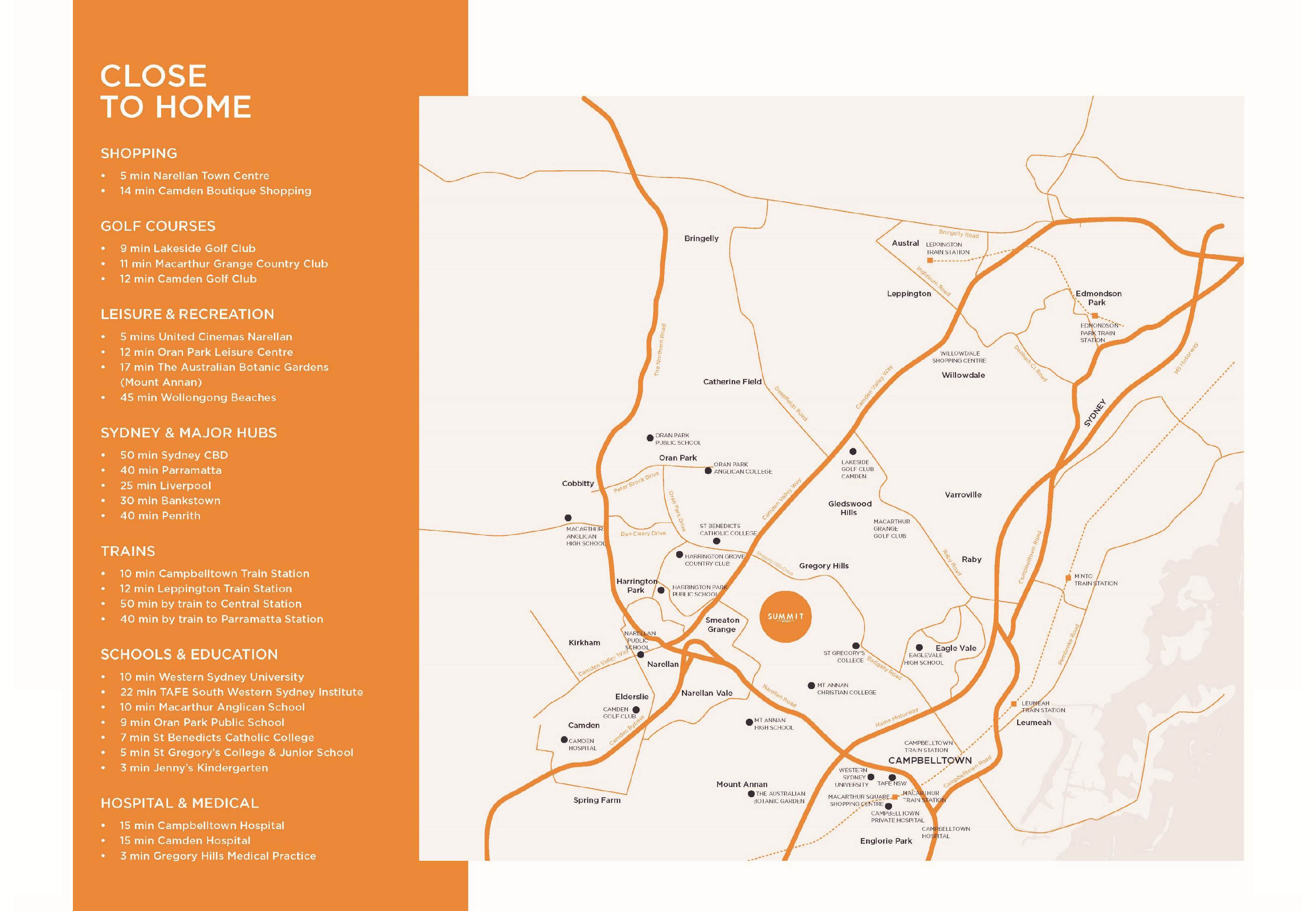 Only 50km south of the Sydney CBD, Summit Rise Estate offers the perfect balance of convenience and lifestyle in the quiet suburban setting of Gregory Hills.