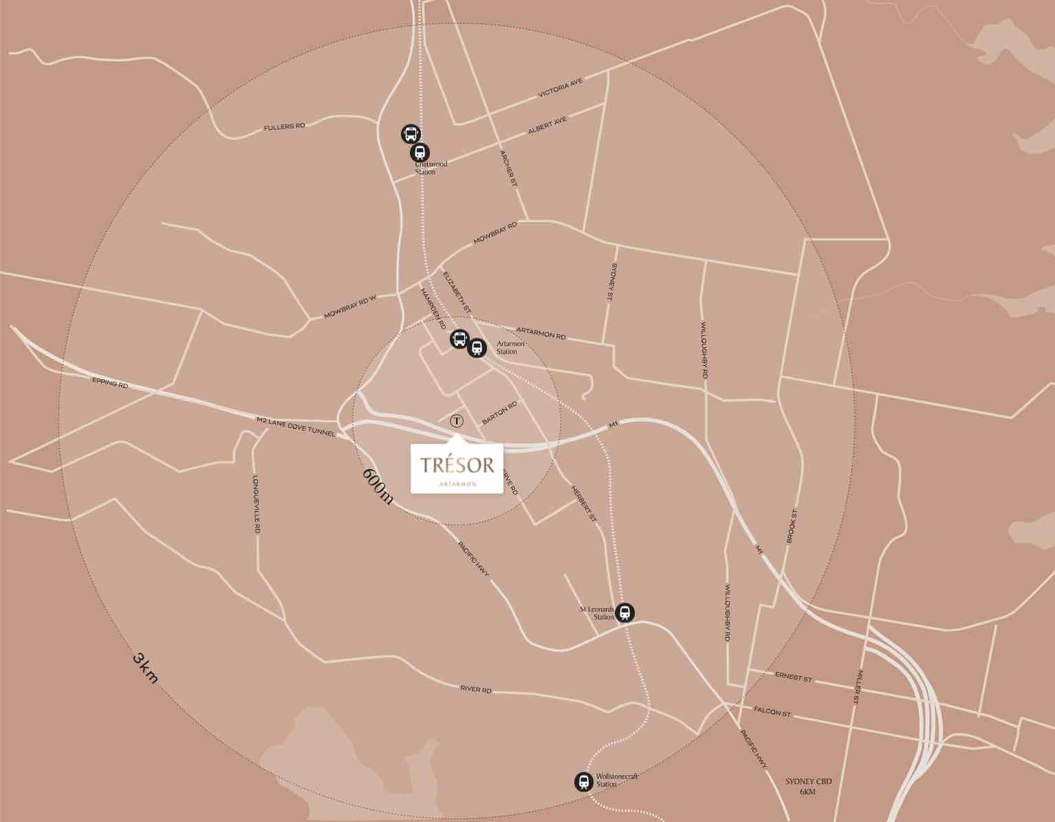Location & Map for Tresor Estate - Artarmon