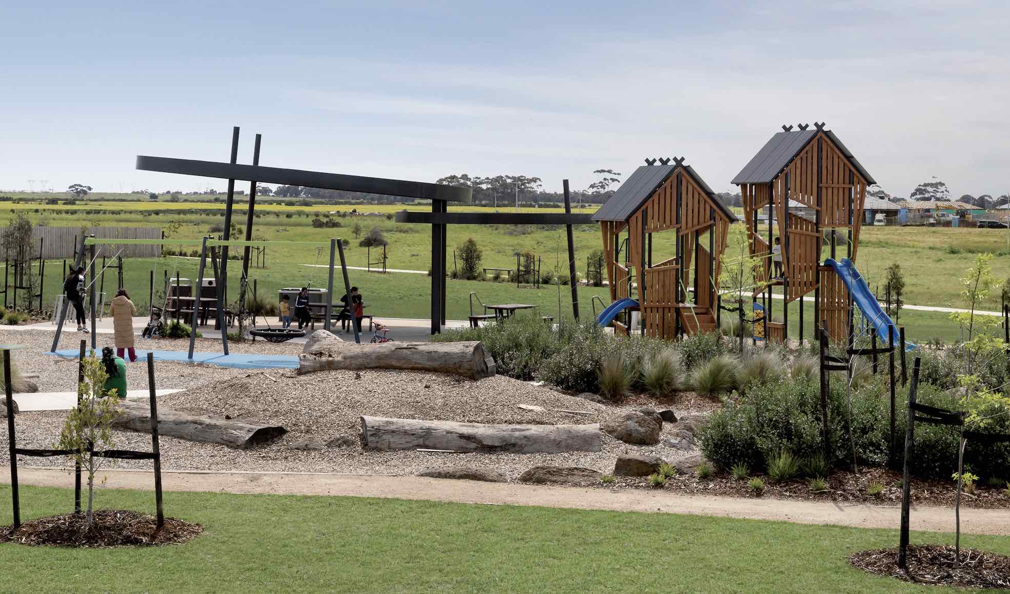 The updated Newhaven Masterplan has expanded to include an additional 53 hectares along Leakes Road. It encompasses four parks and playgrounds, with two already open, Wimba Primary School, future wetlands and waterway, proposed 10-hectare sports grounds, a town centre, and the proposed Tarneit West Train Station (planned to open in 2026).