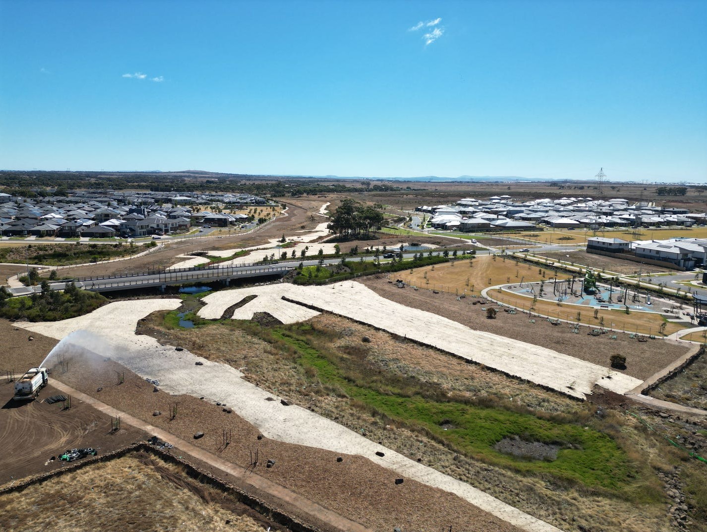 Dry Creek and its tributaries will be strengthened through the delivery of linear open space and parks for the local community to enjoy for walking and cycling.A water feature treatment will provide an attractive link from the Tarneit West local town centre to the waterways and community hub to the north. Furthermore, water assets located throughout the precinct will provide additional opportunities for passive recreation and attractive natural features. The two local town centres, Tarneit West and Kenning Road, will provide for a range of community, commercial, retail and residential uses.
