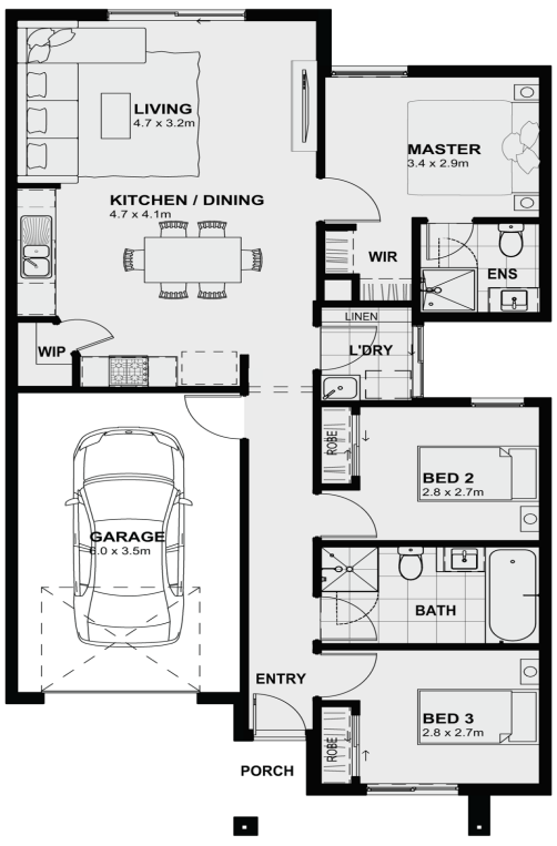 area makes the Locksley the perfect home. All plans and facades are indicative concepts only and are not intended to be accurate depictions. Mimosa Homes reserves the right to amend plans specifications and price without notice. Package prices are based on a standard facade, standard inclusions, the availability of suitable land for development and does not include developer/estate requirements. Facade and inclusion images shown may not be standard and may not be included in the price of the home. All dimensions are approximate. Package prices do not include landscaping, fencing, decking, planter boxes, driveways and paths unless specified.